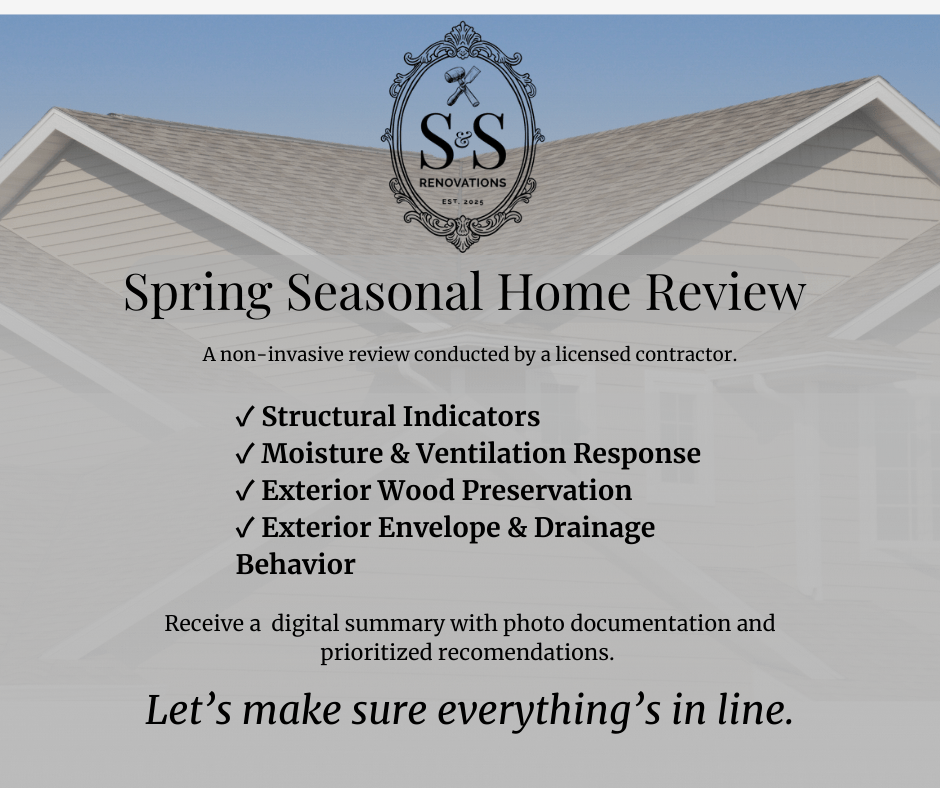 Our Spring Seasonal Home Review is a tailored, non-invasive home review conducted by a licensed renovation contractor—designed to confirm your home remains in strong condition after seasonal stress.