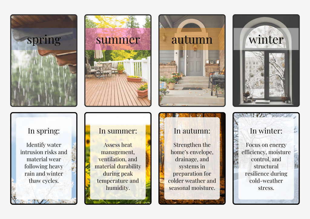 Homes naturally respond to the seasons—temperature changes, moisture, and weather patterns all place subtle stress on a structure over time.